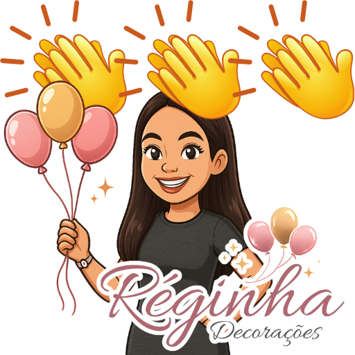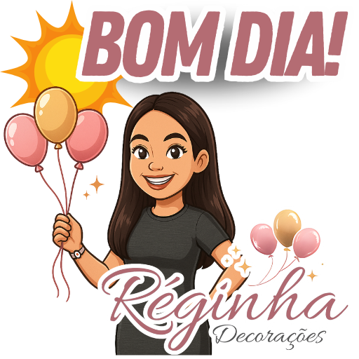 Figurinhas personalizadas criadas para a Reginha Decorações usar no atendimento pelo WhatsApp